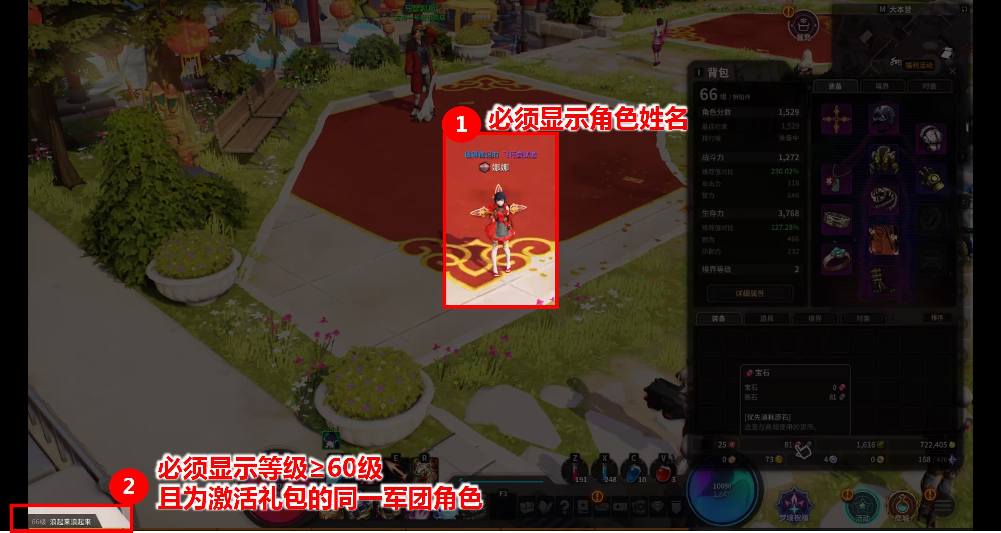 4、截圖必須包括角色、等級等信息,詳情參考截圖示意。