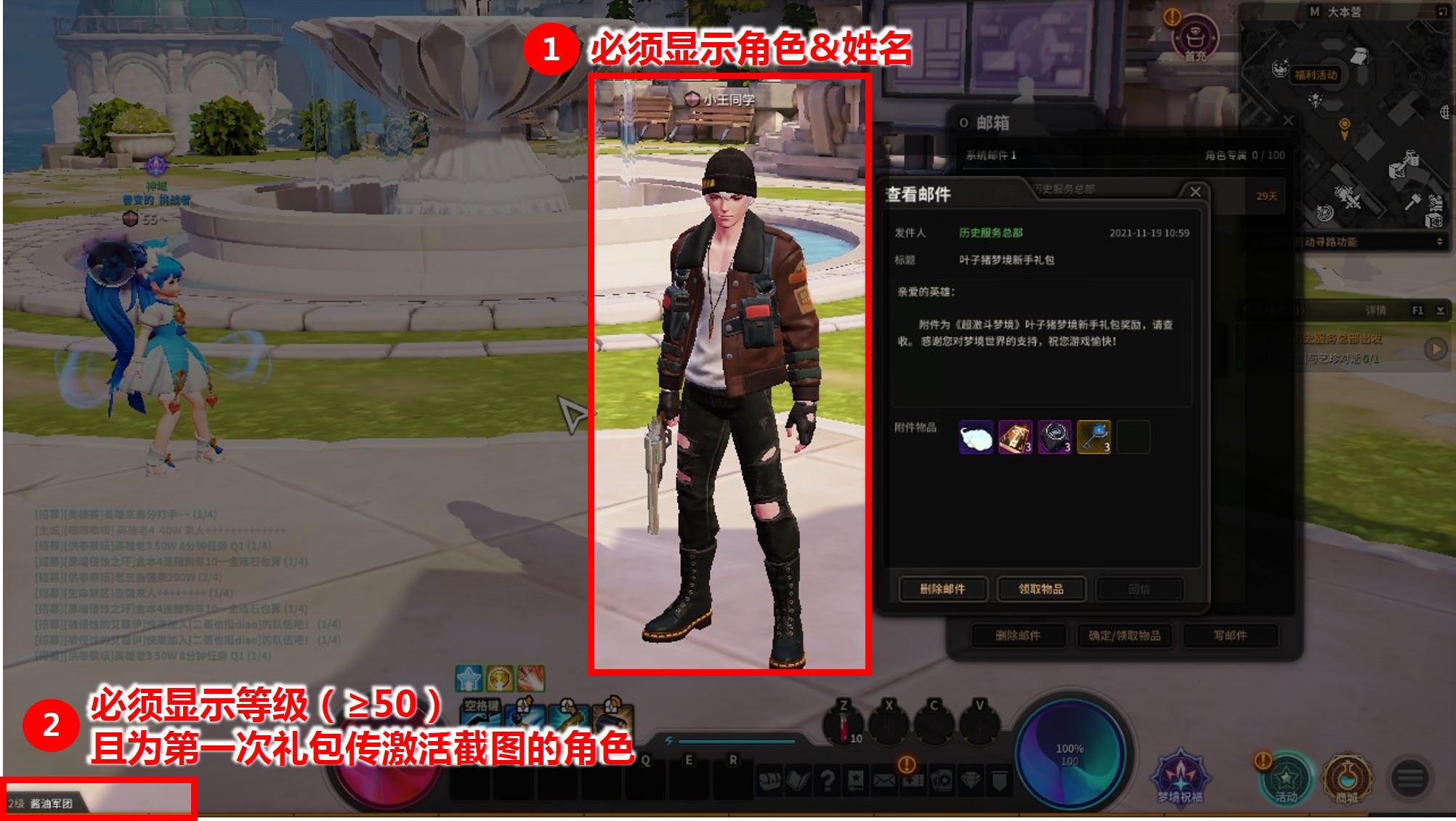 3、截圖必須包括角色、等級等信息,詳情參考截圖示意;