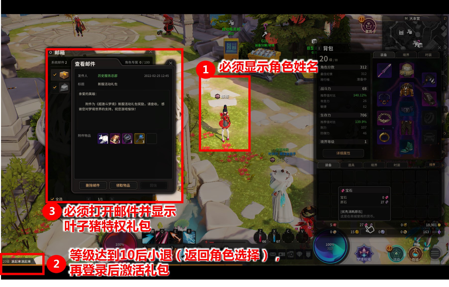 1、玩家上傳角色10級的等級截圖,同時必須打開禮包激活郵件 (請注意先截圖后再領(lǐng)取郵件獎勵物品), 上傳成功后獲得1次抽獎機(jī)會(選擇新服-蘇生暗影將額外+1抽獎機(jī)會),每位玩家限上傳1次激活截圖;